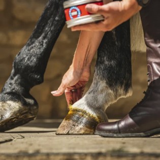 De par sa consistance épaisse, il est conseillé de l'appliquer à la main ou avec une petite brosse en insistant sur le bourrelet périoplique ou la zone abîmée.