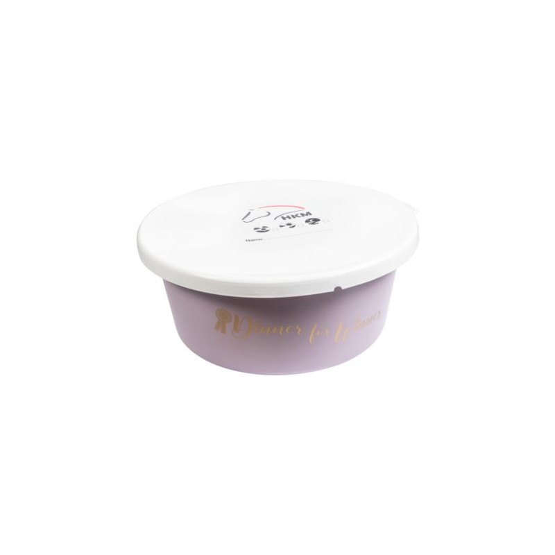 En plastique de qualité alimentaire avec couvercle sur lequel on peut écrire