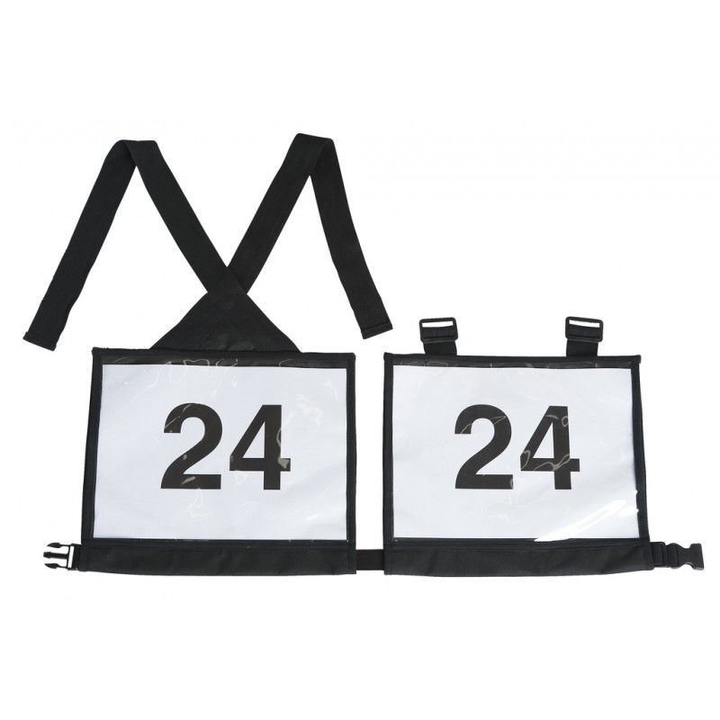 Porte dossard imperméable, avec poches pour numéro recto/verso en P.V.C. transparent.