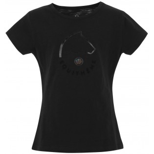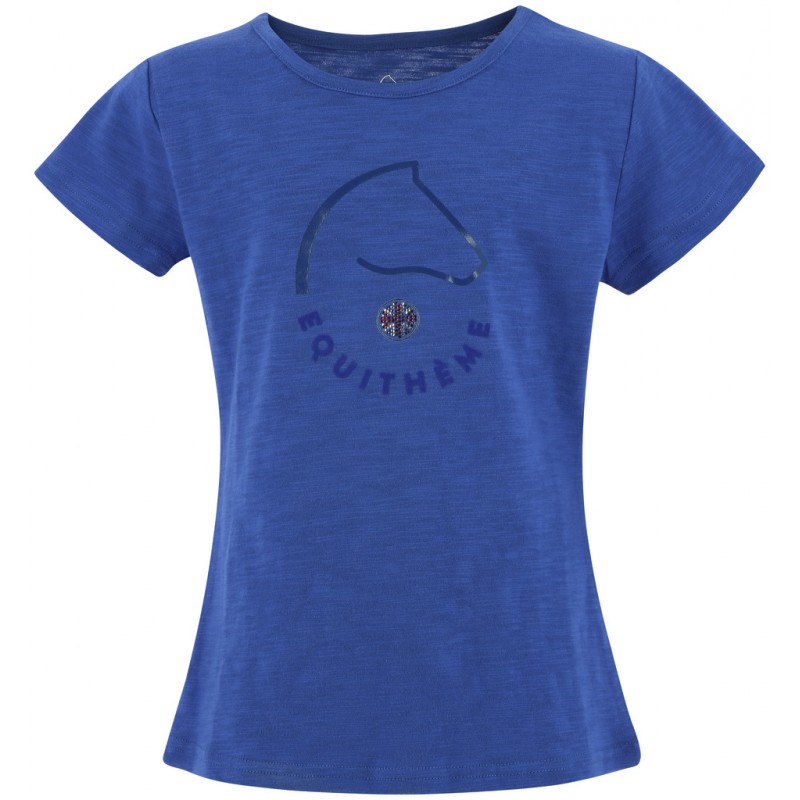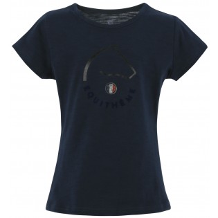 Entièrement composé de coton, le T-shirt EQUITHÈME Claire est décoré d'un marquage du logo de la marque avec un drapeau pays en strass en son centre qui signe toute son originalité !