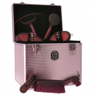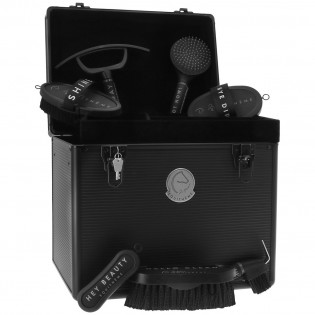Conçue en aluminium, dotée d'une poignée, de fermetures et de renforts soignés et décorée d'un bel écusson, cette mallette de pansage se distingue par un look très chic.