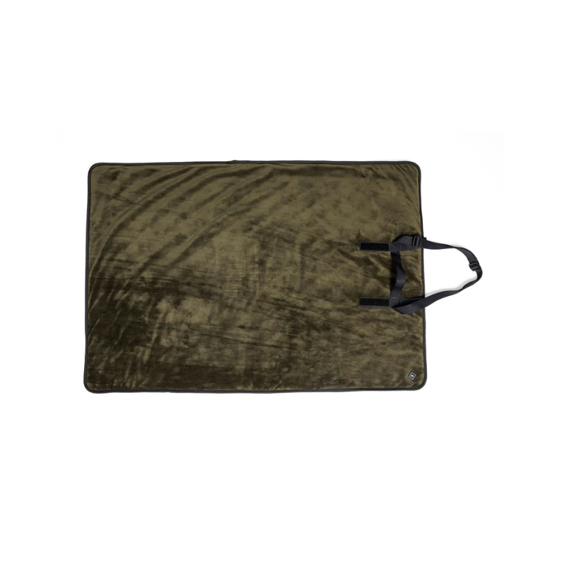 Cette couverture est dotée d'un système de chauffage électrique qui vous permettra de vous réchauffer instantanément, ainsi que votre siège ou votre animal de compagnie. La surface est recouverte d'un velours doux et épais d'une couleur olive, le côté opposé étant protégé par un matériau durable et imperméable. Une poche latérale permet de ranger la banque d'énergie de votre choix. La banque d'énergie se connecte facilement à l'aide du câble USB C fourni.