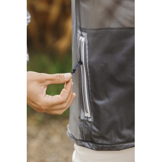 Indispensable par temps pluie, l'Imperméable EQUITHÈME Originals Saigon possède une ouverture dans le dos qui favorise l'aération et une grande poche zippée pour garder vos effets personnels bien au sec pendant la pratique de l'équitation.