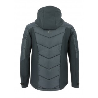 Cette veste hybride à capuche est pourvue d'empiècements en Softshell qui assurent son élasticité grâce aux propriétés extensibles de cette matière.