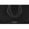 Doublure matelassée absorbant la transpiration avec zones ventilées en maille respirante, amovible par bandes auto-agrippantes pour faciliter le nettoyage (lavable à 30°C). Harnais de fixation 3 points intégré dans un bandeau confort englobant la nuque.