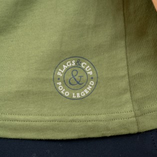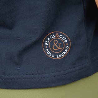 Logo rond Flags&Cup imprimé, contrasté, en bas du dos.