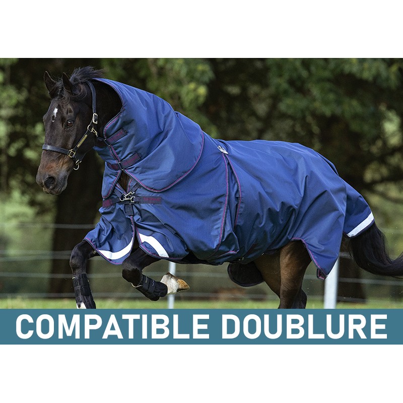 Une couverture conçue en nylon balistique 1000D imperméable et respirant. Très solide, ce tissu promet une couverture solide qui durera dans le temps. La coupe au niveau de l'encolure apportera plus de confort à votre cheval en lui apportant une plus grande liberté de mouvement. Une doublure en polyester antistatique et antibactérienne apportera un grand confort à votre monture. Cette couverture 3 en 1 comprend une couverture de 0g, une doublure de 400g ainsi qu'un couvre cou de 150g. Vous pourrez par la suite opter pour d'autres doublures Optimo afin d'adapter la couverture aux besoins de votre cheval