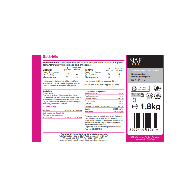 La prévalence des ulcères gastriques chez les chevaux est en croissance, et pas seulement chez les chevaux de course. La formulation avancée de GastriAid a été créé par des nutritionnistes vétérinaires leaders mondiaux. Il contient des antiacides naturels qui aident à défendre la paroi de l'estomac contre les attaques acides, tandis que les pré et pro biotiques aident à équilibrer les niveaux de pH dans le milieu de l'intestin. Ces ingrédients, avec le soutien de fines herbes, travaillent pour assurer la protection et le maintien de l'intestin au quotidien.