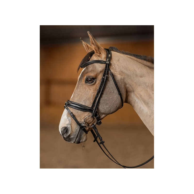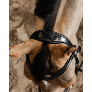 Têtière : large têtière anatomique et confortable, rembourrée et doublée de cuir souple