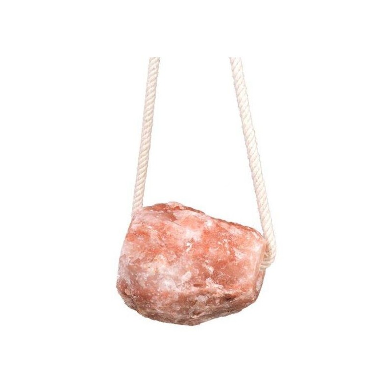 Pierre percée pouvant se placer dans la mangeoire, sur un support pour bloc de sel ou bien être suspendue grâce à la cordelette fournie.