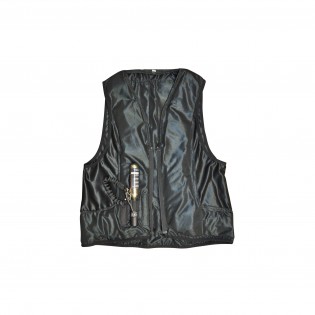 Le déclencheur passe à travers la veste par une fente très discrète, et s’accroche à la selle de manière classique. La doublure airbag s’attache à la veste par l’intermédiaire de 2 fermetures à glissière à l’avant et 5 boutons pression autour du cou. La fermeture de la veste est assurée par une fermeture à glissière.