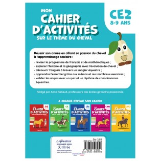 Mon cahier d’activités sur le thème du cheval CE2 permet de réussir son année en alliant sa passion du cheval à l'apprentissage scolaire :