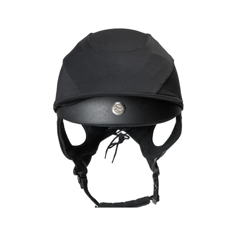 Couvre-casque pour les casques de concours complet EQ3 « Lynx » avec visière souple et panneaux en maille. Le couvre-casque est fabriqué en lycra noir et dispose d'un élastique lisse pour une fixation facile au casque.