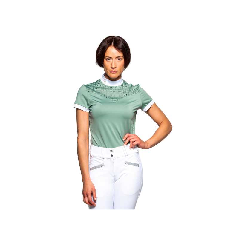 Ses détails soignés comme son décolleté micro perforé ainsi que son col blanc orné d'une ravissante broderie dorée F&C, le polo de concours ISLA vous apportera un style très féminin et élégant pour les concours en plus d'avoir un excellent rapport qualité prix.