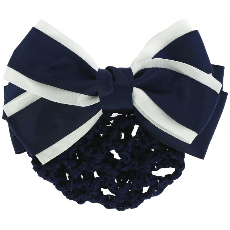 Très chic, la Barrette-résille pour cheveux EQUITHÈME Duo est composée d'une pince à cheveux avec résille et d'un joli nœud marine et blanc.