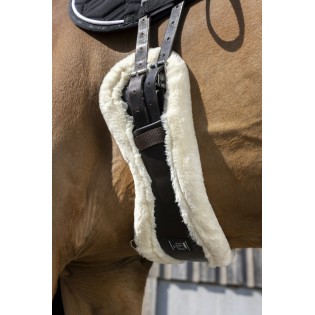 Idéale pour les chevaux sensibles, la Sangle courte Norton XTR Mouton synthétique facilite le sanglage.