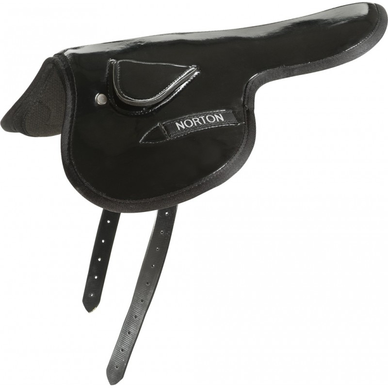 Selle noire, la Selle de course Norton Rexine a une structure avant en alliage d'aluminium moulé et gainé de plastique noir avec des passages d’étrivières intégrés.